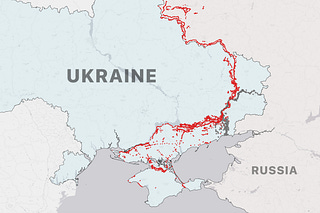 Satellite imagery shows trenches and barriers span the front line in Ukraine
